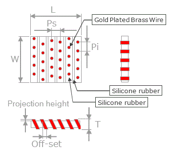 異方導電型的檢測連接器,在矽膠中高密度排列鍍金的金屬細線