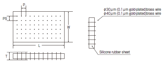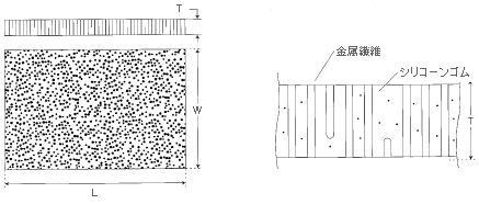 這是一款在絕緣性矽橡膠的厚度方向上高密度排列金屬細線的異方導電性片材